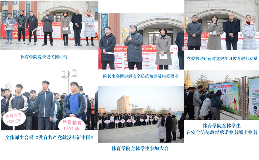 史冬博院长就安全主题发表讲话。提出三点要求:一、体院学生要关注国际关系和国家安全,奋发图强。二、体院学生要放眼于国际、国家、社会和校园安全的高度考虑个人的发展安全,依托理工大的平台通过考研迈向更高的台阶。三、每位同学都要提高安全意识,加强生命安全、心理安全、教室活动安全、交通安全、食品卫生安全、防火安全、防电安全、防溺水安全、运动安全、防止网络诈骗安全等多方面的安全。