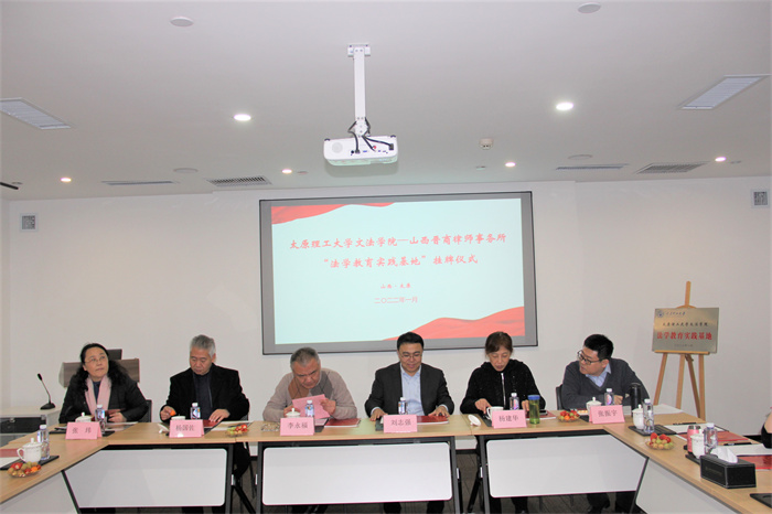 在全体与会人员的鉴证下,双方共同举办了“法学教育实践基地”的挂牌仪式。活动结束后,文法学院全体教师参观了晋商律所的办公场地、设施及环境,观看了晋商律所的宣传片。